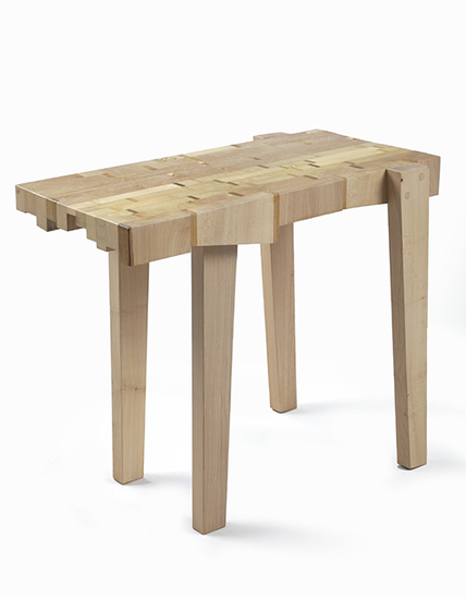 De roomwitte kleur van het esdoornhout met de iets donkere vlekken van eiken ertussen, hebben dezelfde kleur als die van een ijsbeer. De ‘rafelige’ zijkanten van de tafel zijn net de lokken van de vacht van een ijsbeer als deze uit het water komt.